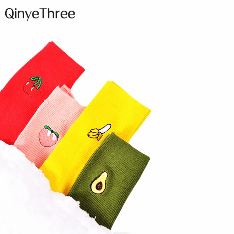 prefix] Cute Cartoon Fruit Print Avocado Banana Cherry Peach Girls Kawaii Socks meias Korean Harajuku Embro