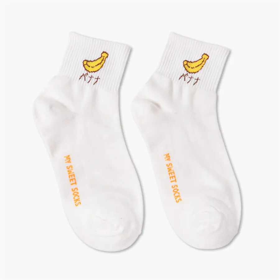 prefix] Women's Cartoon Fruit Embroidery Peach Strawberry Watermelon Banana Pattern Cute Art Socks Korean H