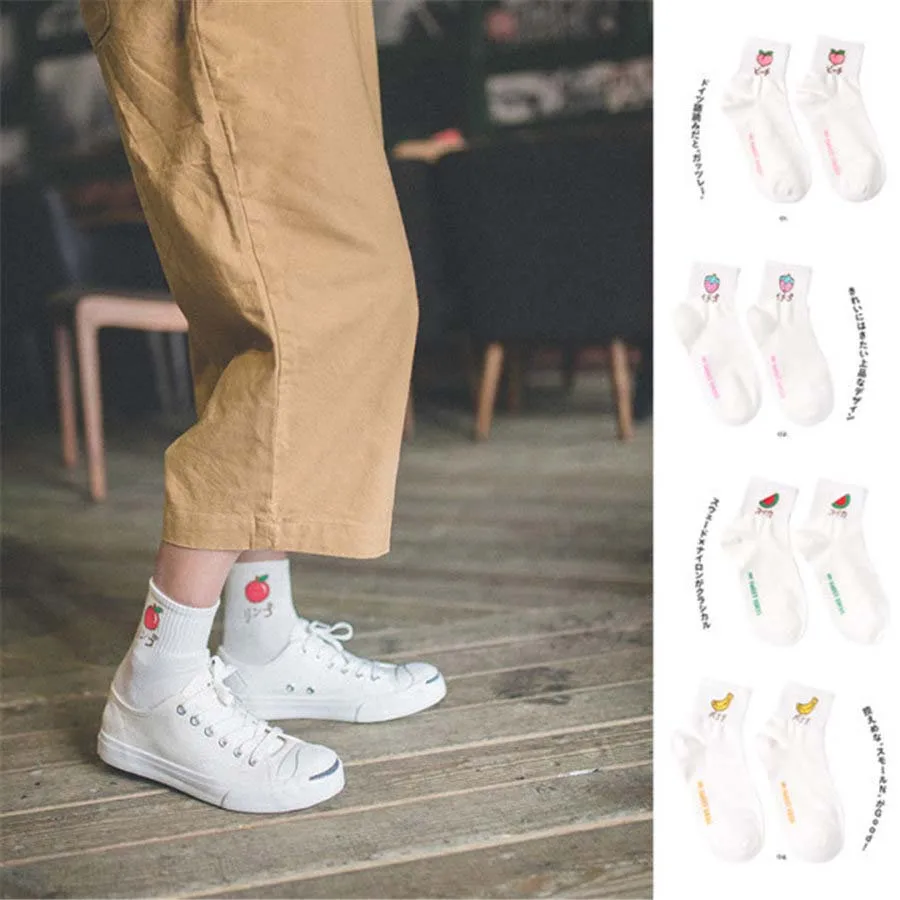 New Cute Harajuku Fruit Funny Socks Kawaii Peach/Strawberry/Banana Art White Socks Women Japanese Sweet Casual Calcetines Mujer :Click Here