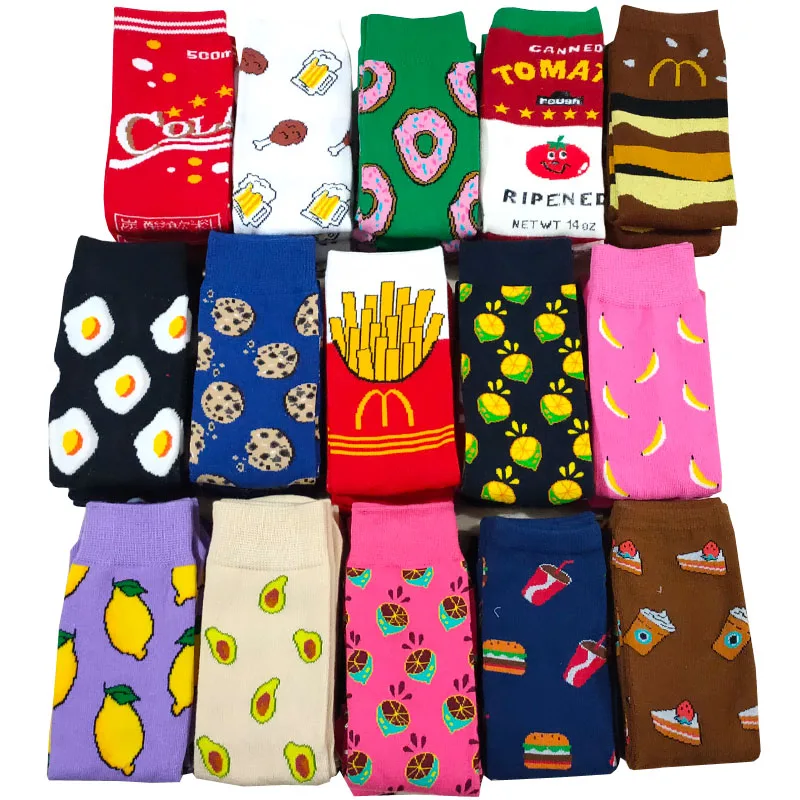 prefix] Harajuku Funny Women Socks Donuts Food Hamburg Fruits Banana Egg Cookie Cute Women Milk Creative Li